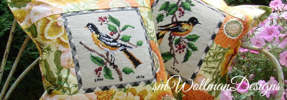 All needlepoint pillows, tuffets, slips, and Heirloom Needlepoint Pumpkins (tm) are handmade in our South Dakota studio, but all the needlepoints are handmade by 1000s of unknown hands over a span of many, many years. Every needlepoint has a story to tell.